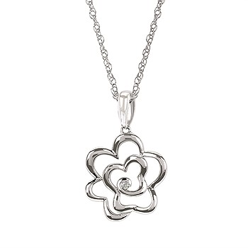 Diva Diamonds® Flower Pendant In Sterling Silver With .01 Ct. Diamond With 18" Box Chain (Adjustable To 16") And Lobster Claw Clasp