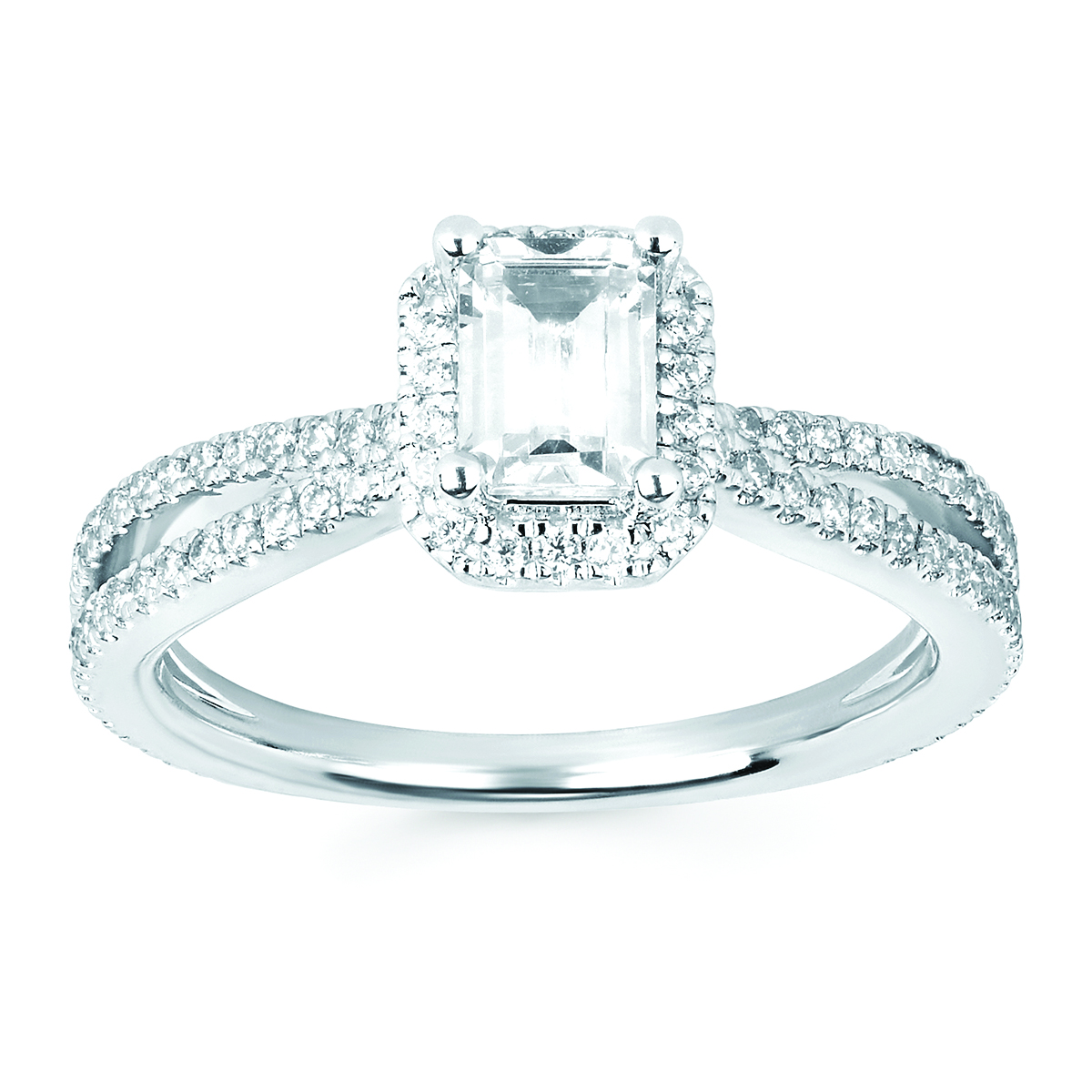 Engagement Ring Halo Bridal: 3/8 Ctw. Diamond Semi Mount shown with 1/2 Ct. Emerald Center Diamond in 14K Gold