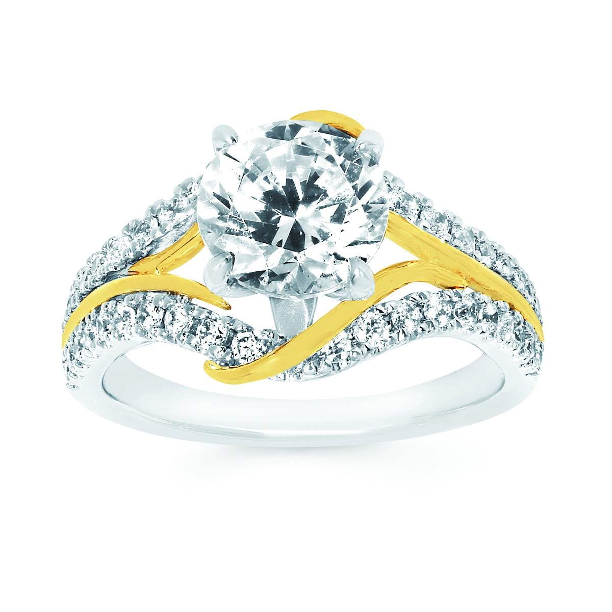 Engagement Ring Modern Bridal: 1/2 Ctw. Diamond Semi Mount shown with 2 Ct. Round Center Diamond in 14K Gold