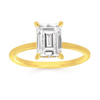 Classic Bridal: Hidden Halo,1/8Ctw. Diamond Mounting With 2 Ct. Lab Grown Emerald Center Diamond In 14K Gold