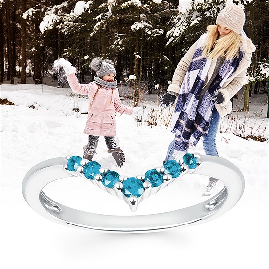 Bluetopaz Stackable Chevron Birthstone Band In 14K Gold